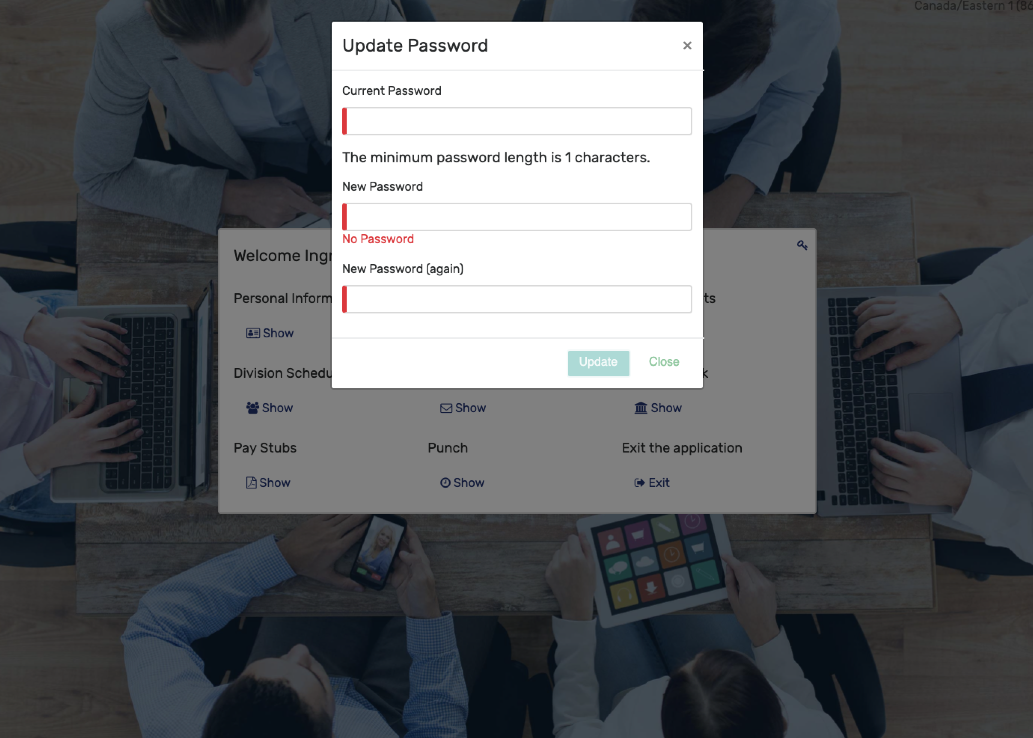 To change your employee password via the Employee Portal