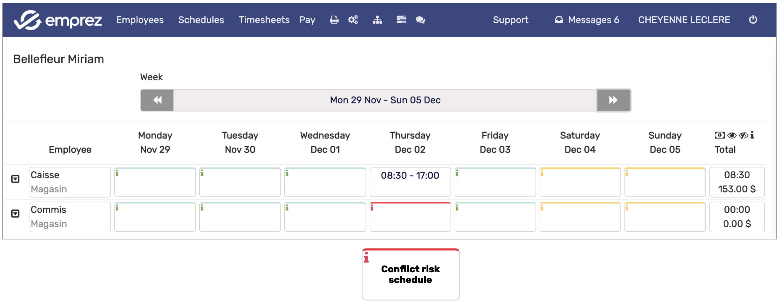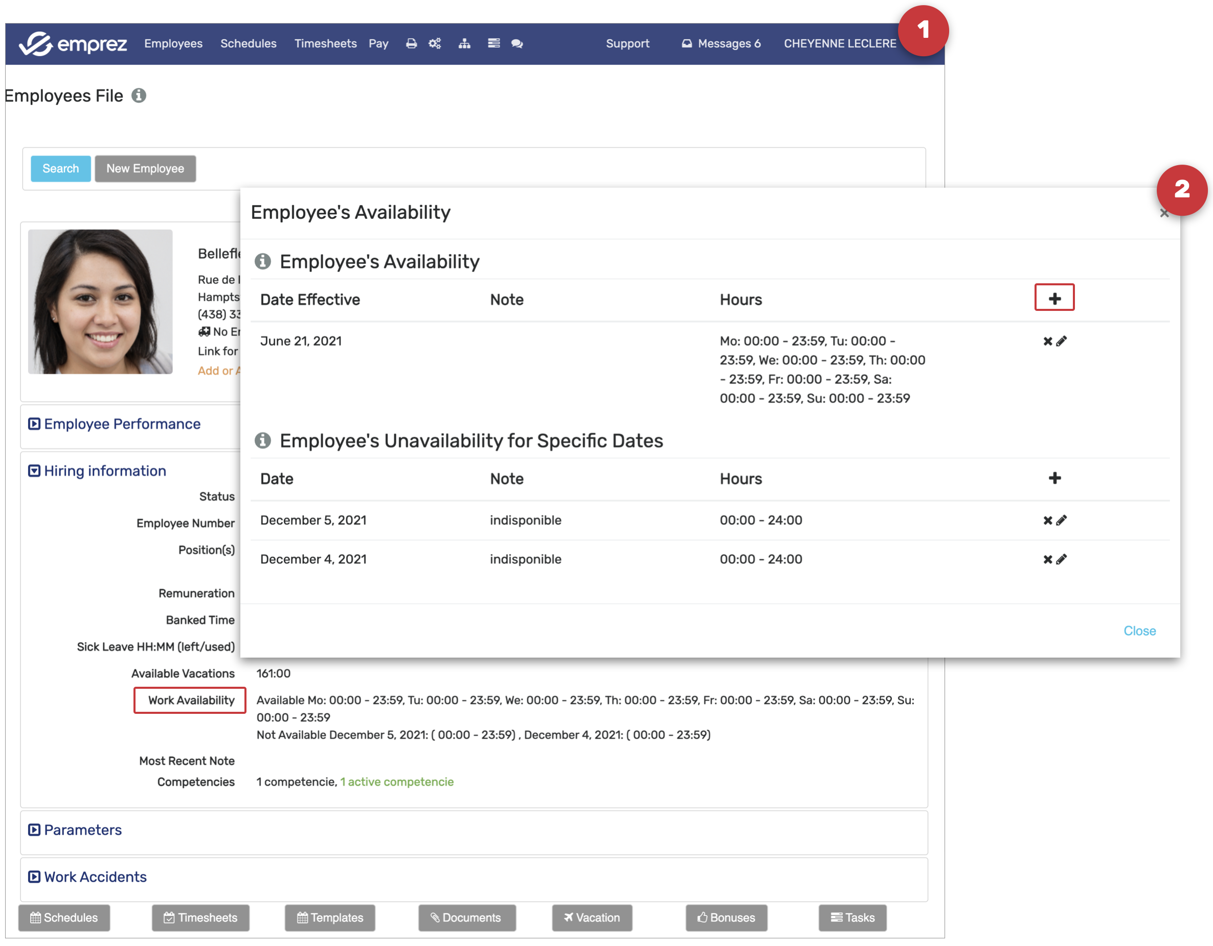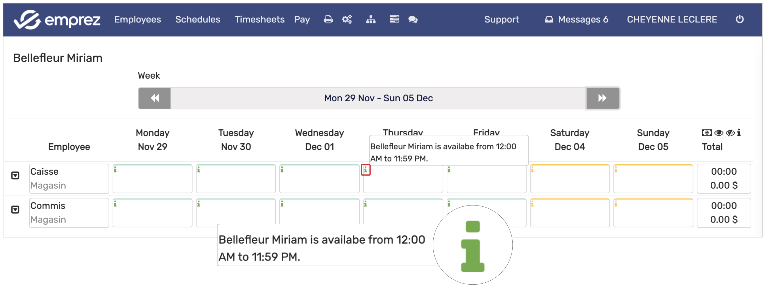 By having configured the availability correctly, you will be able to know in real-time which of your employees are available to work on a week, a day, or a specific time of the day. Emprez will assist you when creating your schedules thanks to several color codes and symbols which you will discover in the section below.