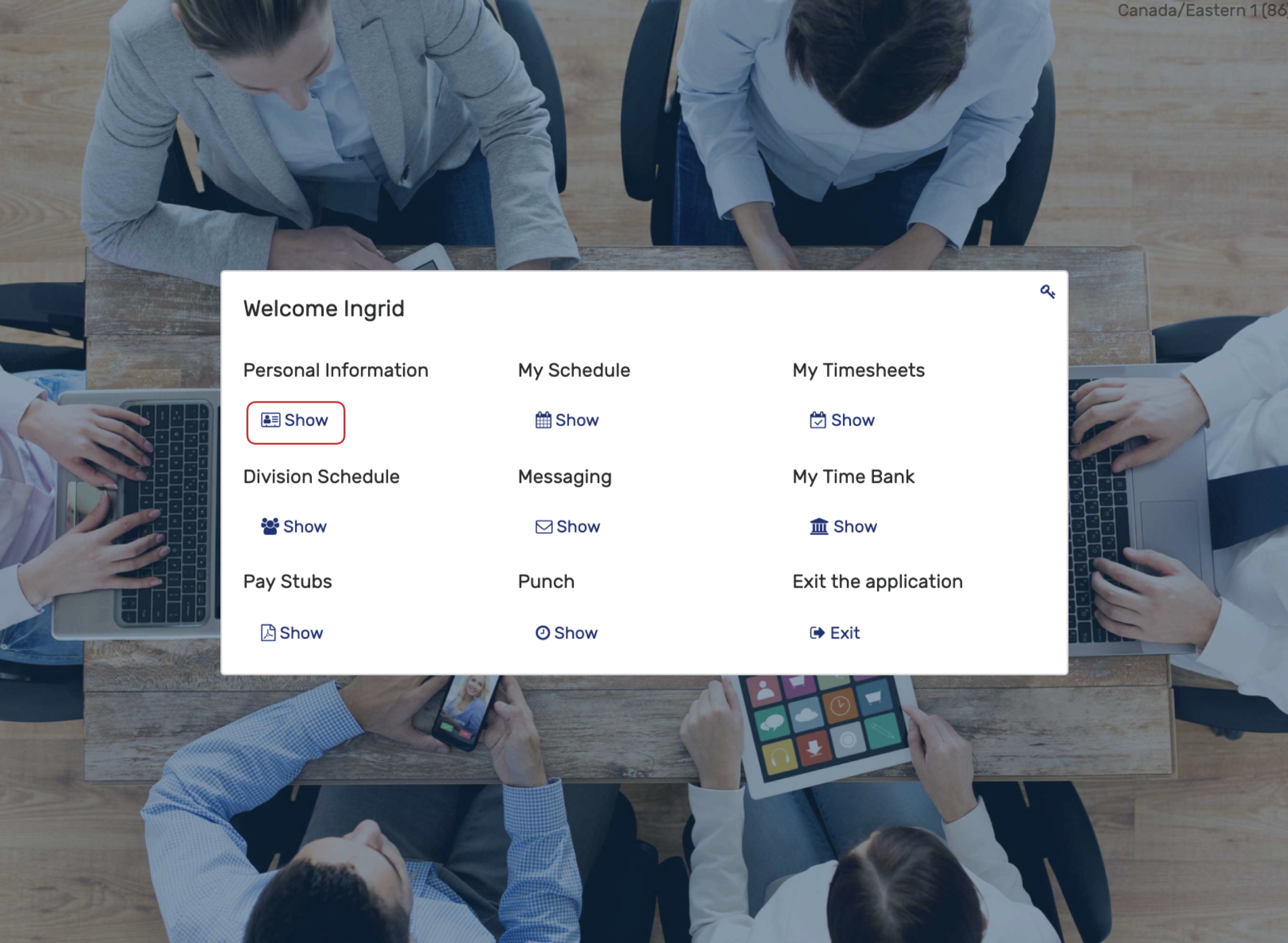 Schedule My Schedule To view your work schedule, click Show under My Schedule on the main menu. To see more detail for a shift, click on the hours displayed for that shift. The calendar is displayed by month and you can scroll ahead or back using ...