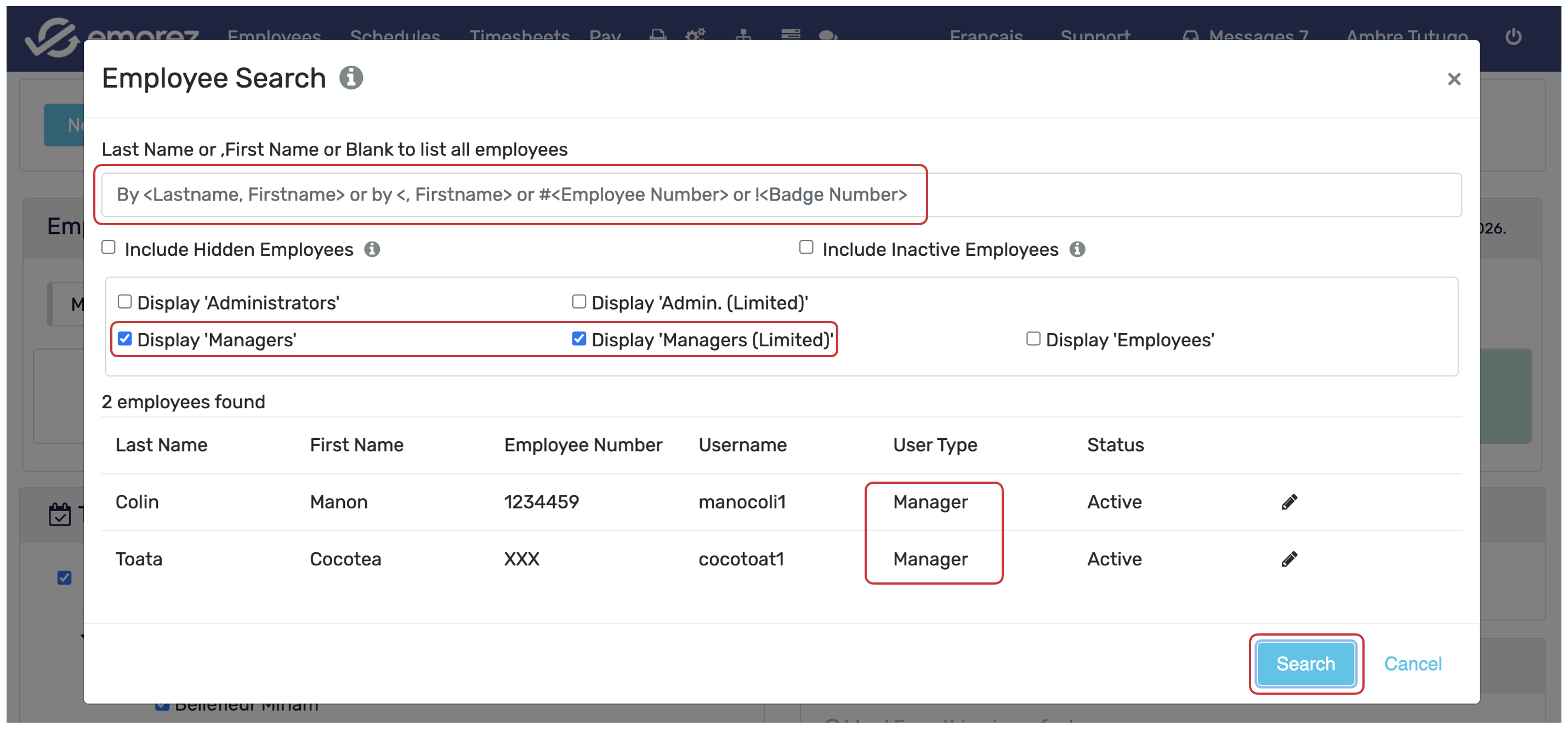 For more information on the sort order and its functions, click here. Click on the Employee menu, Choose Modify Employee Sorting Order (batch), Select the employees: by the enterprise, OR by service/department OR by position, Click on Search, Check ...