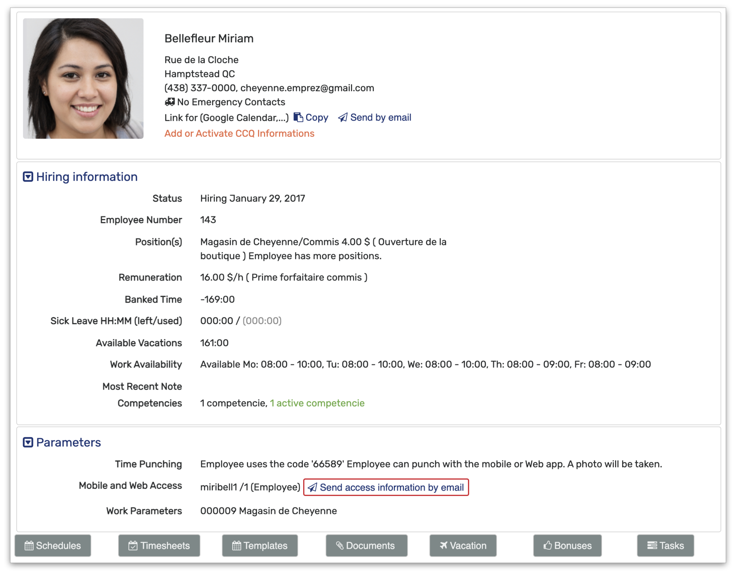 The user code and password for each employee, manager(s), or Administrator(s) can be found in Employee file > Parameters > Mobile and Web access. Change your own password If you are connected to your account you can personalize your password: Click ...