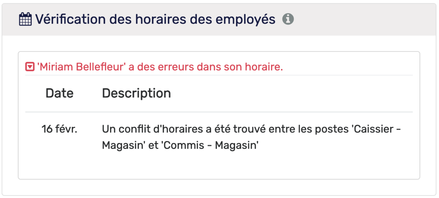 - Il y a un conflit entre les disponibilités de l'employé et l'horaire planifié