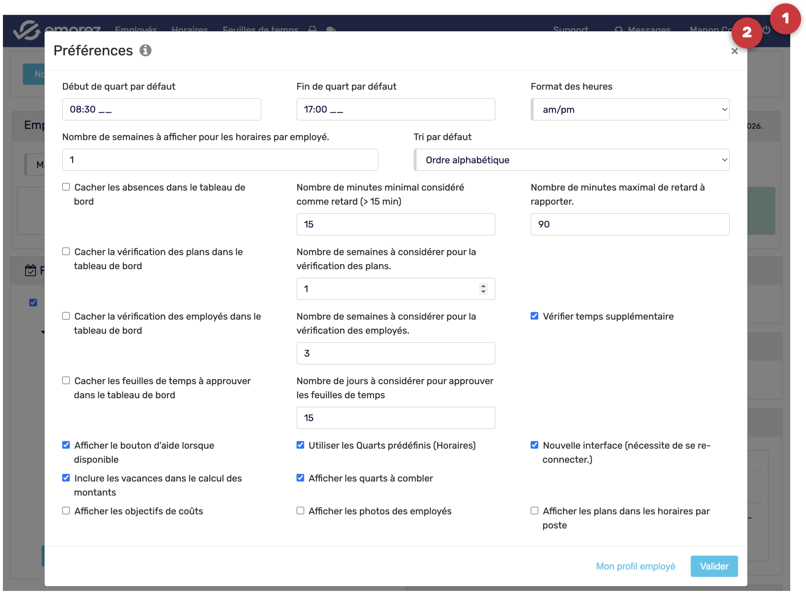 Vérification des horaires des employés
