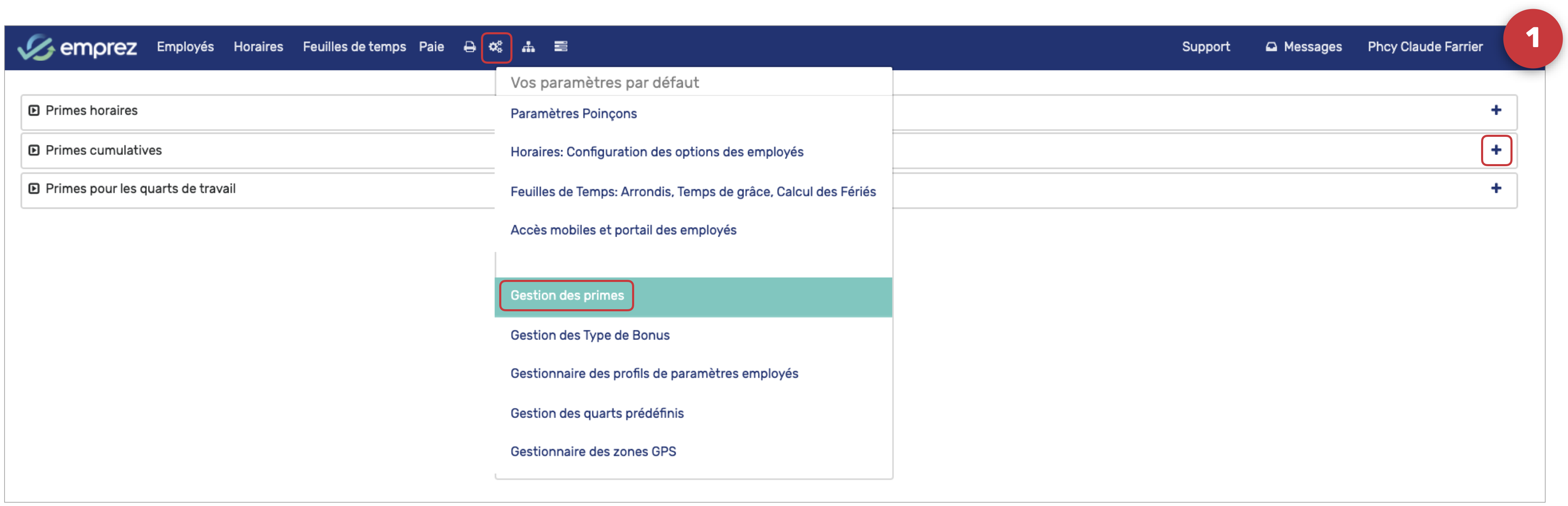 - Dans le menu principal, cliquez sur le menu Paramètres, choisissez le sous-menu Gestion des primes,