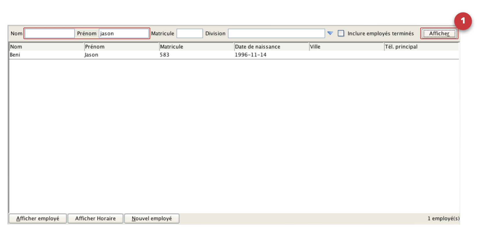 - Recherchez et afficher l'employé,