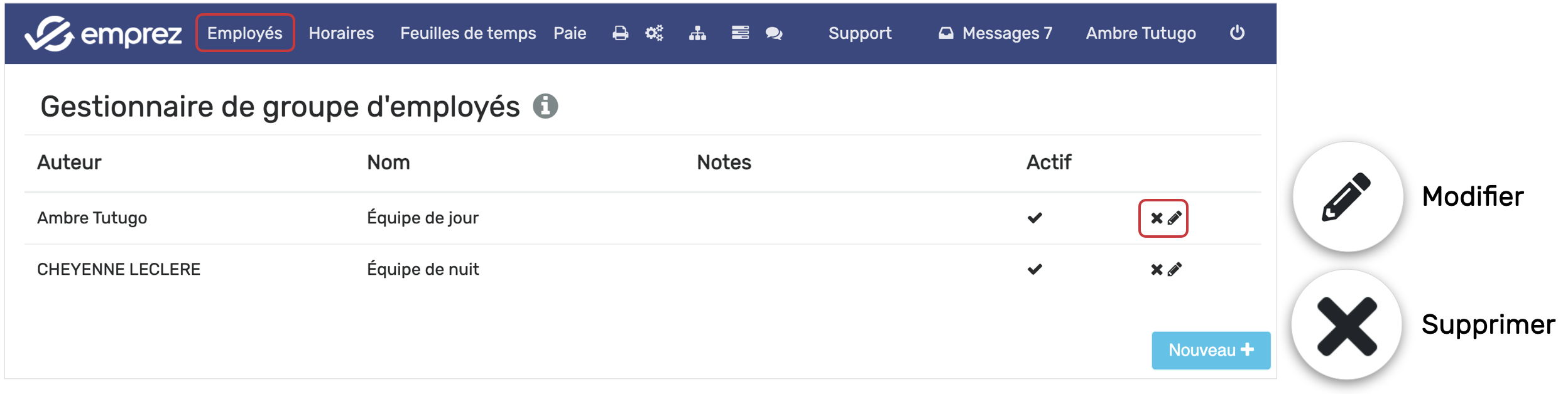 Modifier ou Supprimer un groupe d'employé