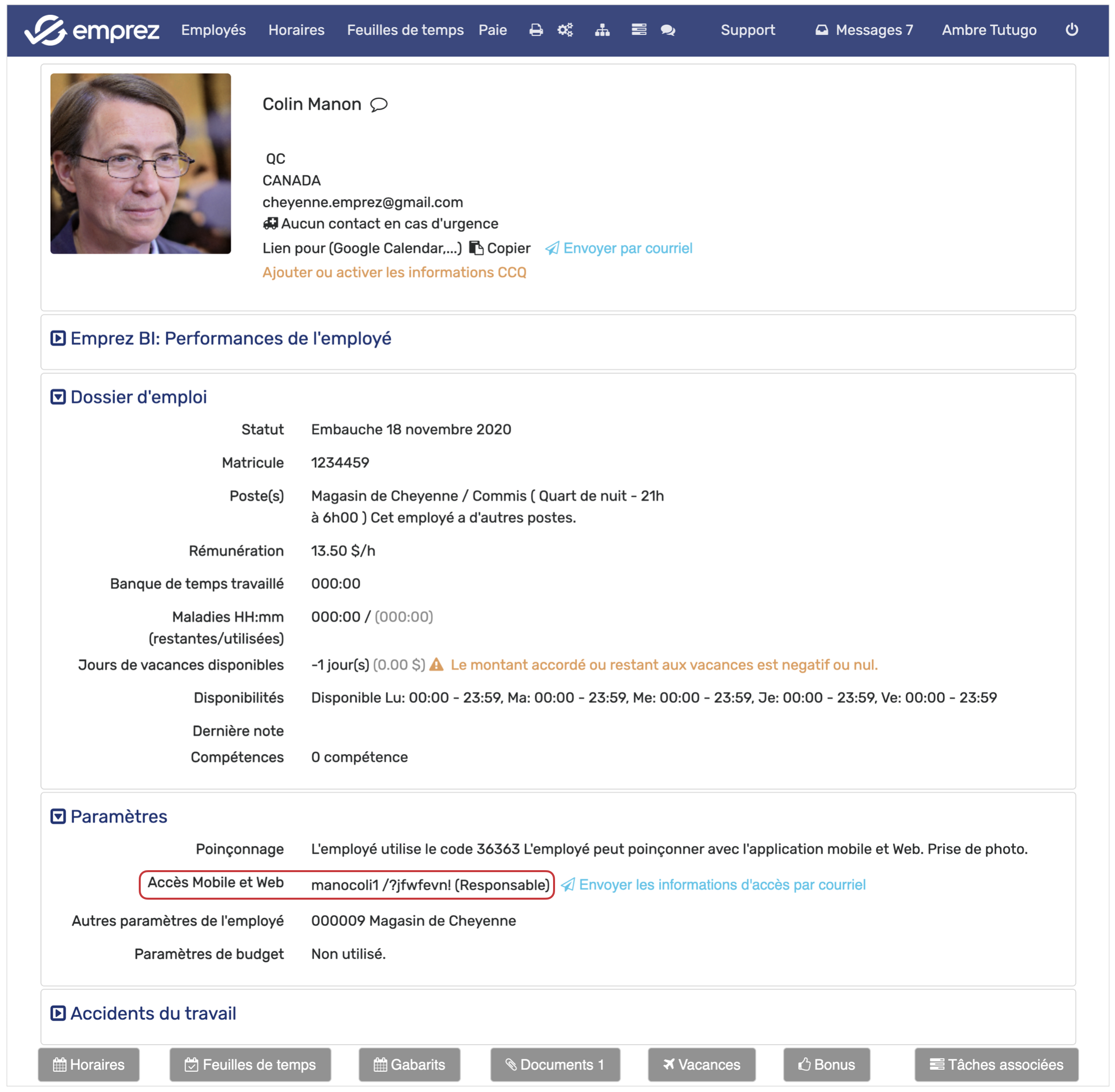 - Allez dans son dossier d’employé,
