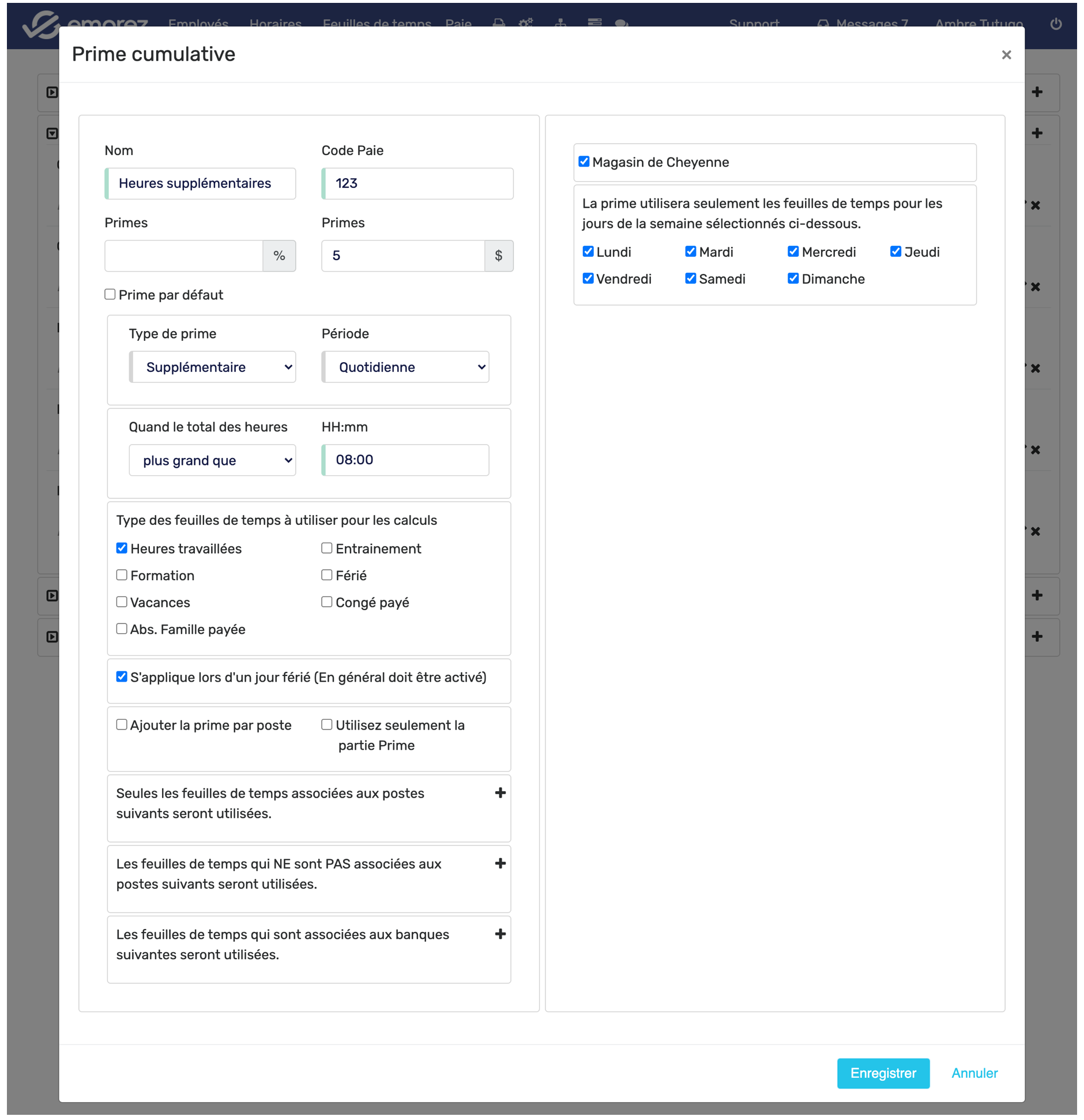 Si vous inscrivez 2$, Emprez va ajouter un montant fixe de 2$/h aux employés qui auront cette prime à leur dossier.