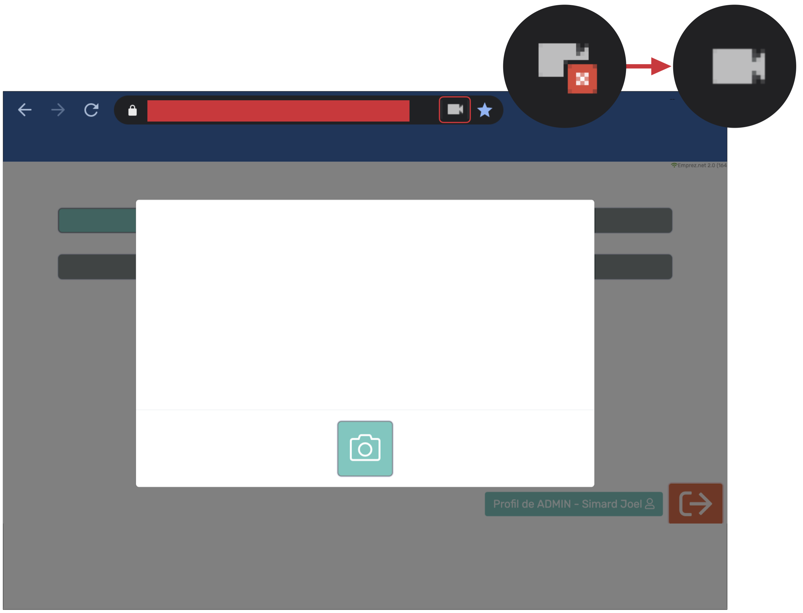 Lorsque vous aurez permis l'accès à la caméra sur google Chrome la caméra à droit de la barre de recherche ne sera plus accompagnée de la croix rouge comme sur la première photo.